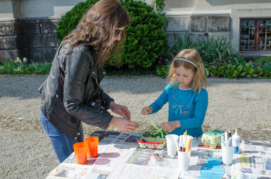 Am letzten Mittwoch den 12. April 2017 war es soweit. Die erste Crossiety Ostereiersuche konnte dank dem traumhaften Frühlingswetter im wunderschönen Park in Thalwil durchgeführt werden. Über 60 Personen mit Kindern aus Thalwil und der Region Horgen & Zimmerberg sind unserem Aufruf auf unserer Online-Plattform, Facebook-Seite und unserem Blog gefolgt und haben zwischen 09:00 und 16:00 sämtliche Wiesen, Büsche und Höhlen nach leckeren Ostersäckchen abgesucht. Sobald die Kinder ein Säckchen gefunden hatten, ging es am Basteltisch weiter. Alle Kinder erhielten dort ein Osternestchen, welches anschliessend mit bunter Farbe bemalt und mit viel Glitzer, Federn und natürlich grünem Osterstroh geschmückt werden konnte.